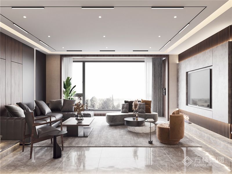 无主灯设计、暗藏式线性光源、大面积温润的木饰面,保留本真,合理动线,水到渠成。 不同的材质属性,在以相同的"设计语言"巧妙融合。