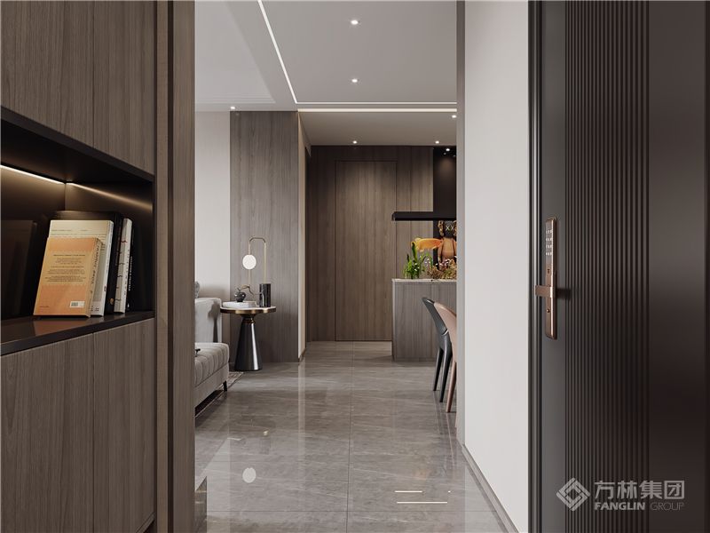 整个空间在灰白的基础配色上,加入清新自然的木色,显得十分简约温馨。墙面装饰也尽量简化,让空间简约不失艺术感。软装上凸显灰色的质感与舒适,同时利用绿植作为点缀,让低调简约的空间释放出清新的气息。